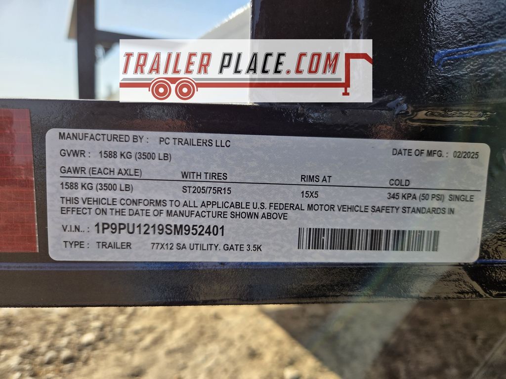 2025 P&C Trailers 77"X12' Utility Trailer W/ Stand Up Gate - 52401