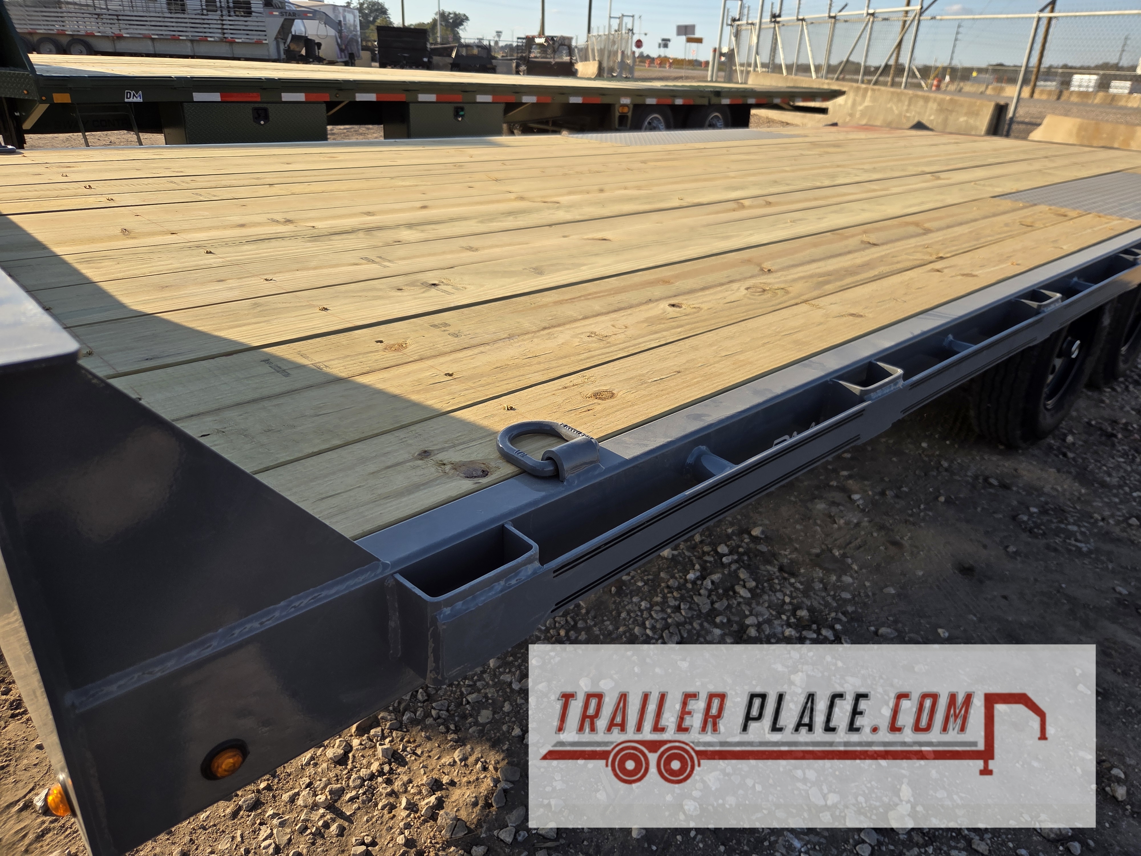 General duty deck over design provides a 102″ max-width trailer bed over the tires without the extra frame weight of traditional deck over equipment trailers.