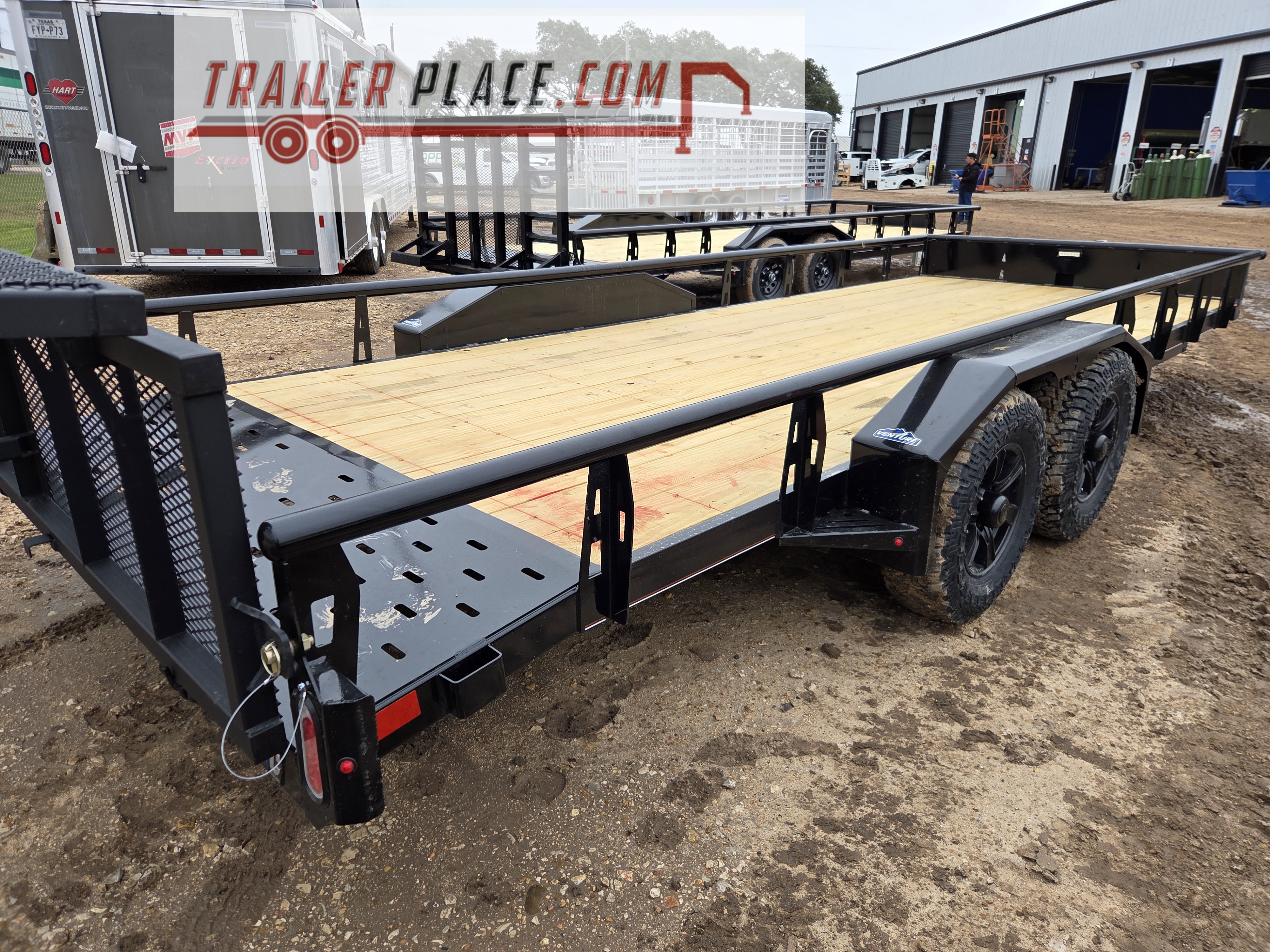 trailers , cattle trailer , ramp gate trailer , treated wood deck trailers , powder coat trailer , gloss black